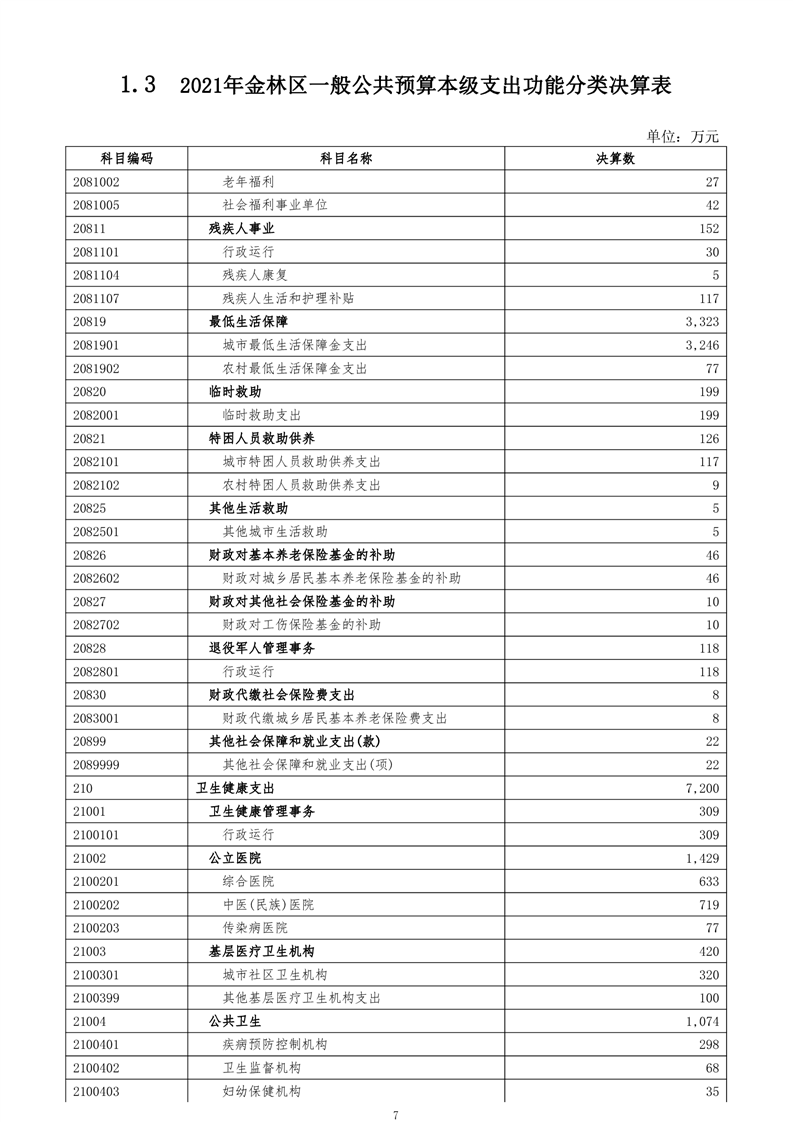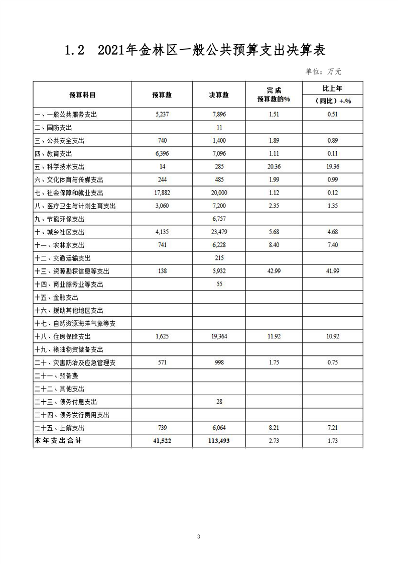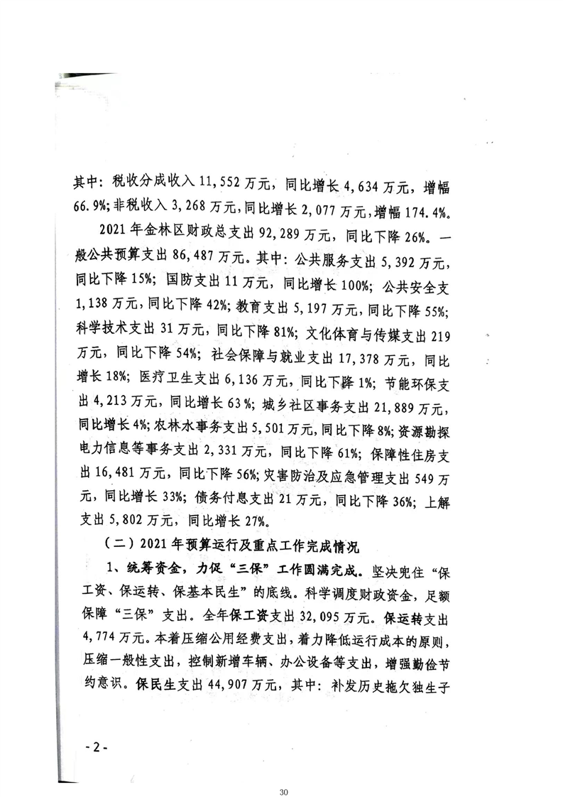 金林区2021年财政决算