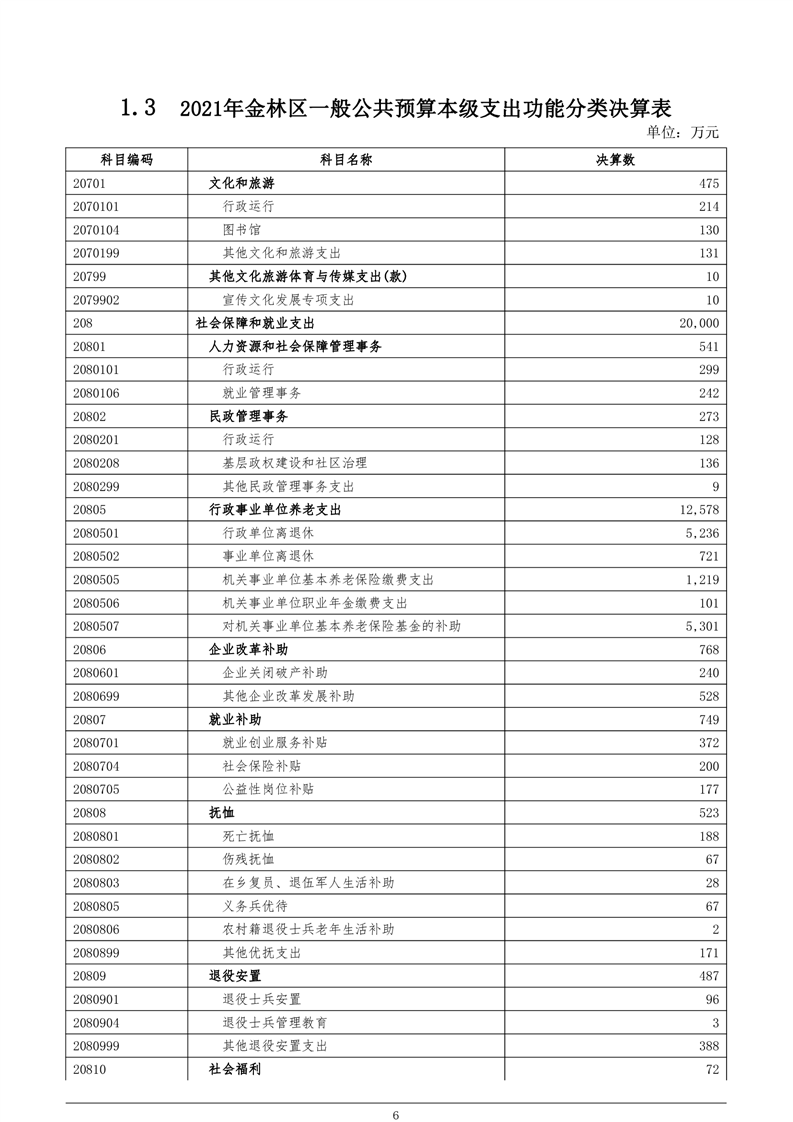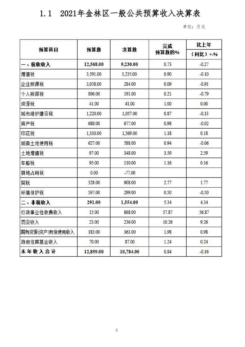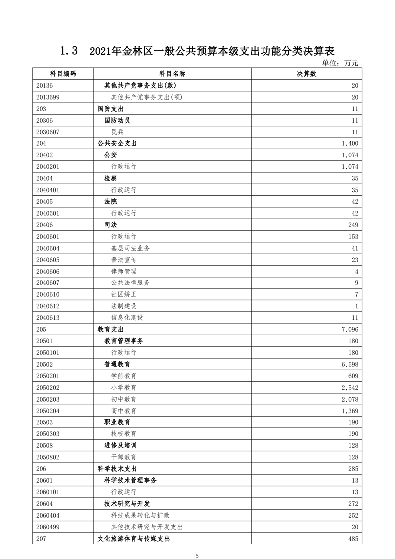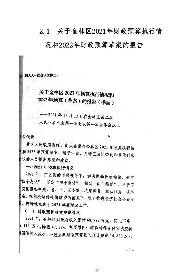 金林区2021年财政决算