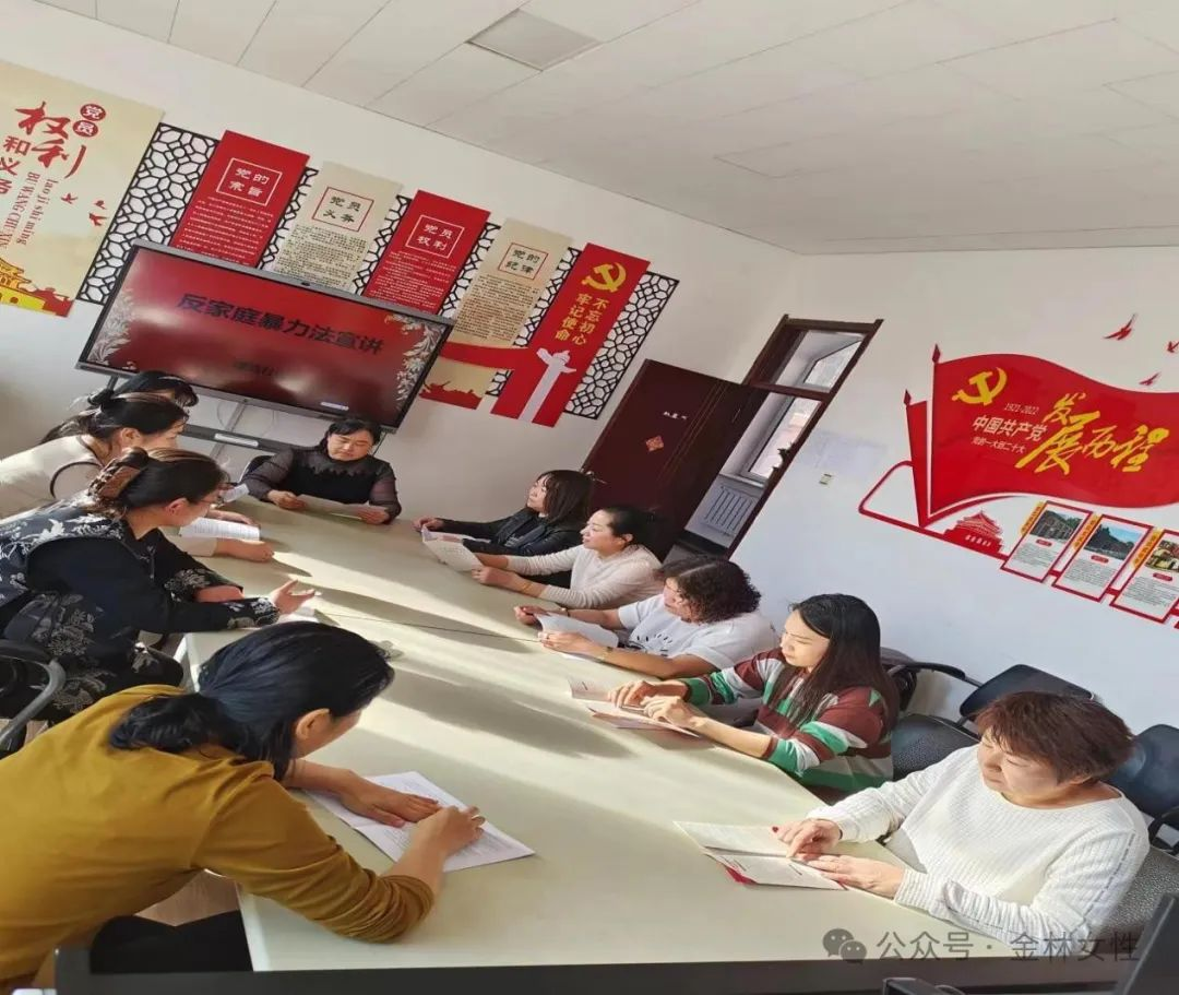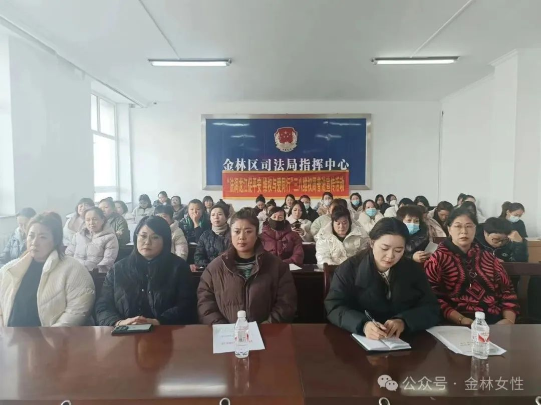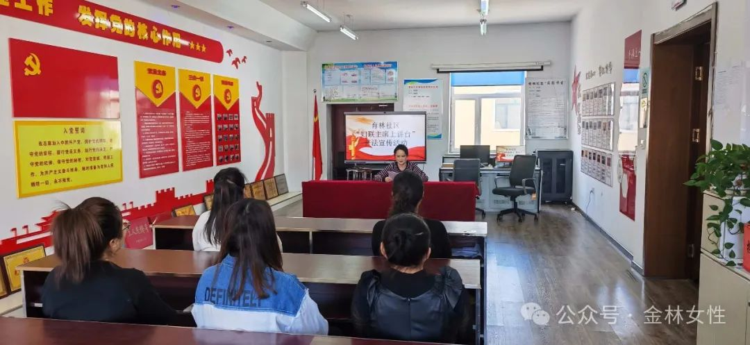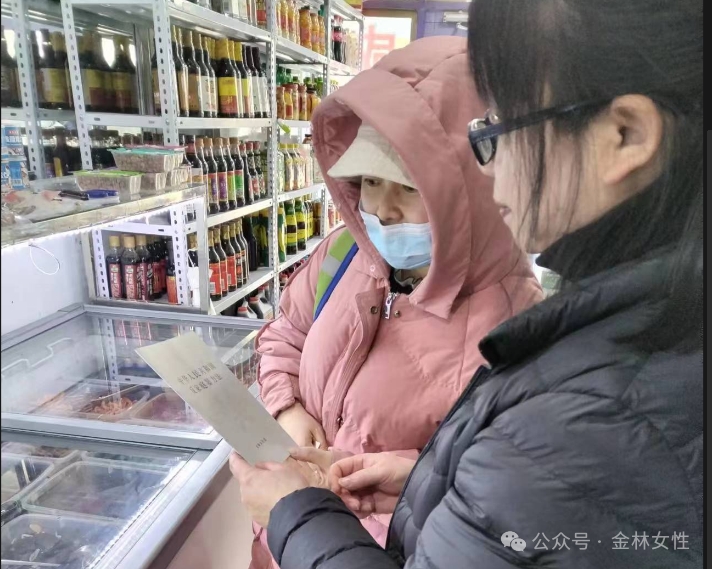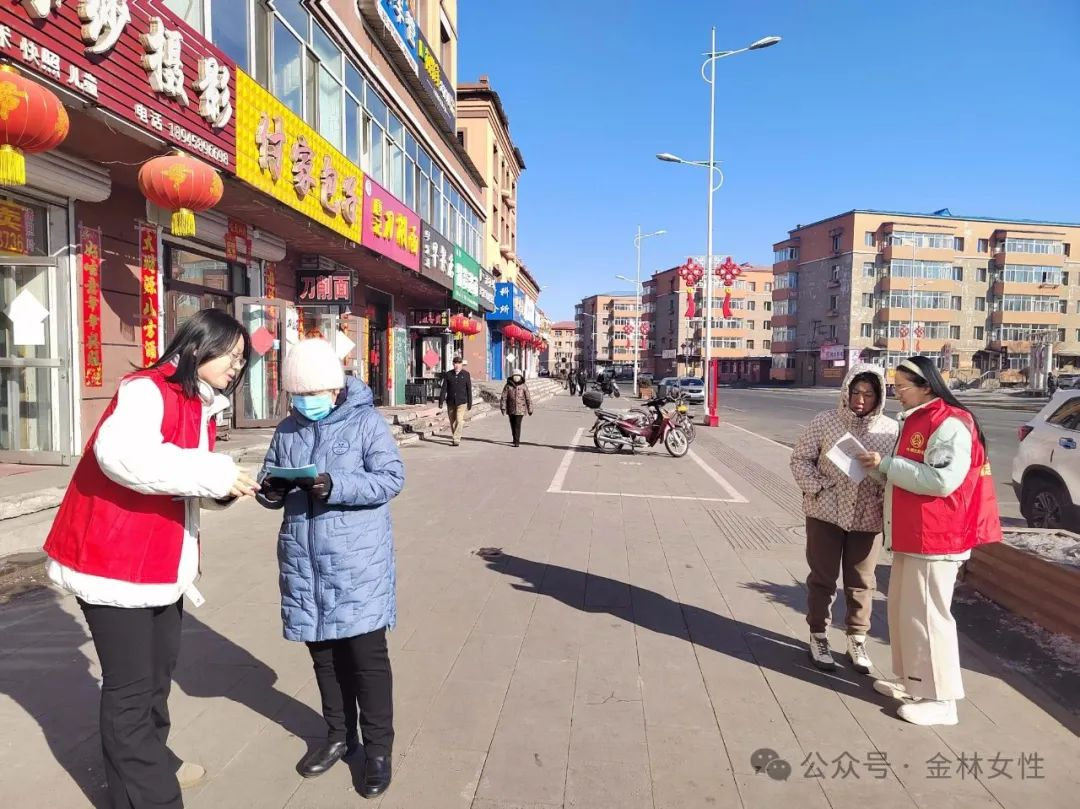 爱民社区、新建社区、文明社区、金山社区等组织巾帼志愿者进辖区、进商铺、进家庭开展普法宣传活动。