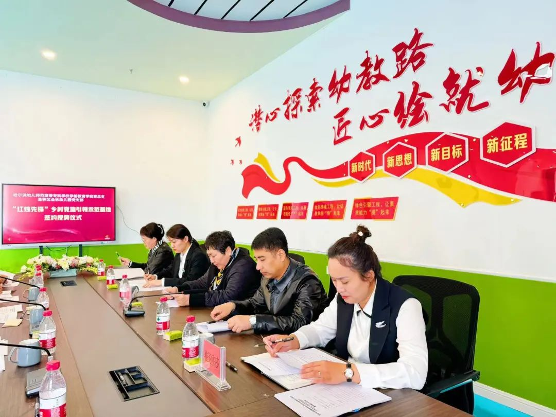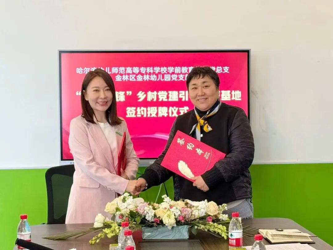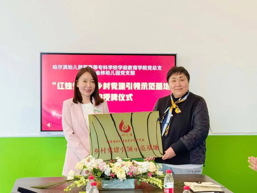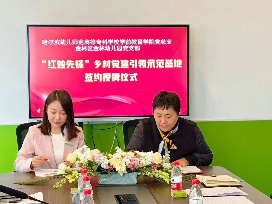 哈尔滨幼儿师范高等专科学校学前教育学院党总支与金林区金林幼儿园党支部签署了乡村党建引领示范基地协议并颁授“哈尔滨幼儿师范高等专科学校‘红烛先锋’乡村党建引领示范基地”牌。