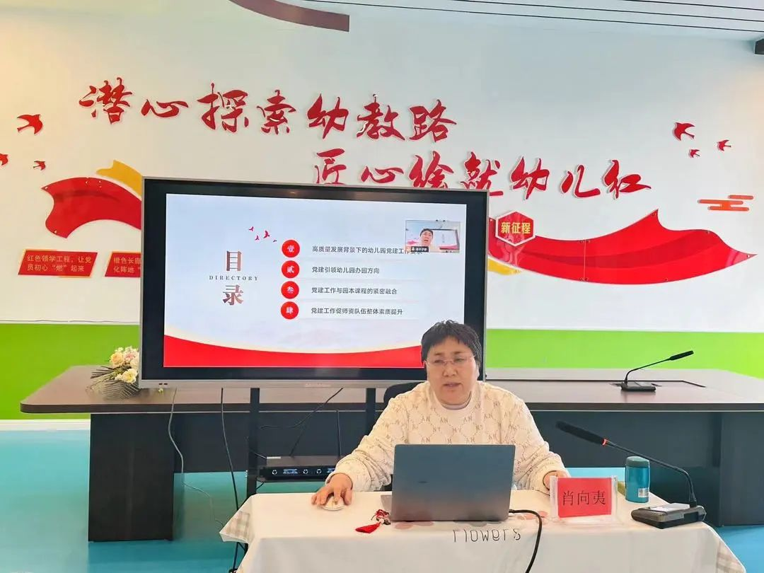 金林幼儿园党支部书记、园长韩宇对幼儿园党建品牌创建工作进行汇报,持续深入学习贯彻习近平新时代中国特色社会主义思想,全面贯彻落实党对教育工作的领导。用“三创新四加强”工作法,创新发展,踏实奋进。紧紧围绕区委中心工作,探索“党建+幼教”的工作模式,以“红色领学燃初心、橙色长廊活阵地、蓝色清风严责任、金色铸魂强队伍、绿色引擎提能力”为核心,打造内涵丰富、特色鲜明的“潜心探索幼教路、匠心绘就幼儿红”党建特色品牌,推动党建工作与保育教育工作深度融合、高效联动,为进一步谱写“以高质量党建引领学前教育高质量发展”新篇章而努力奋斗!