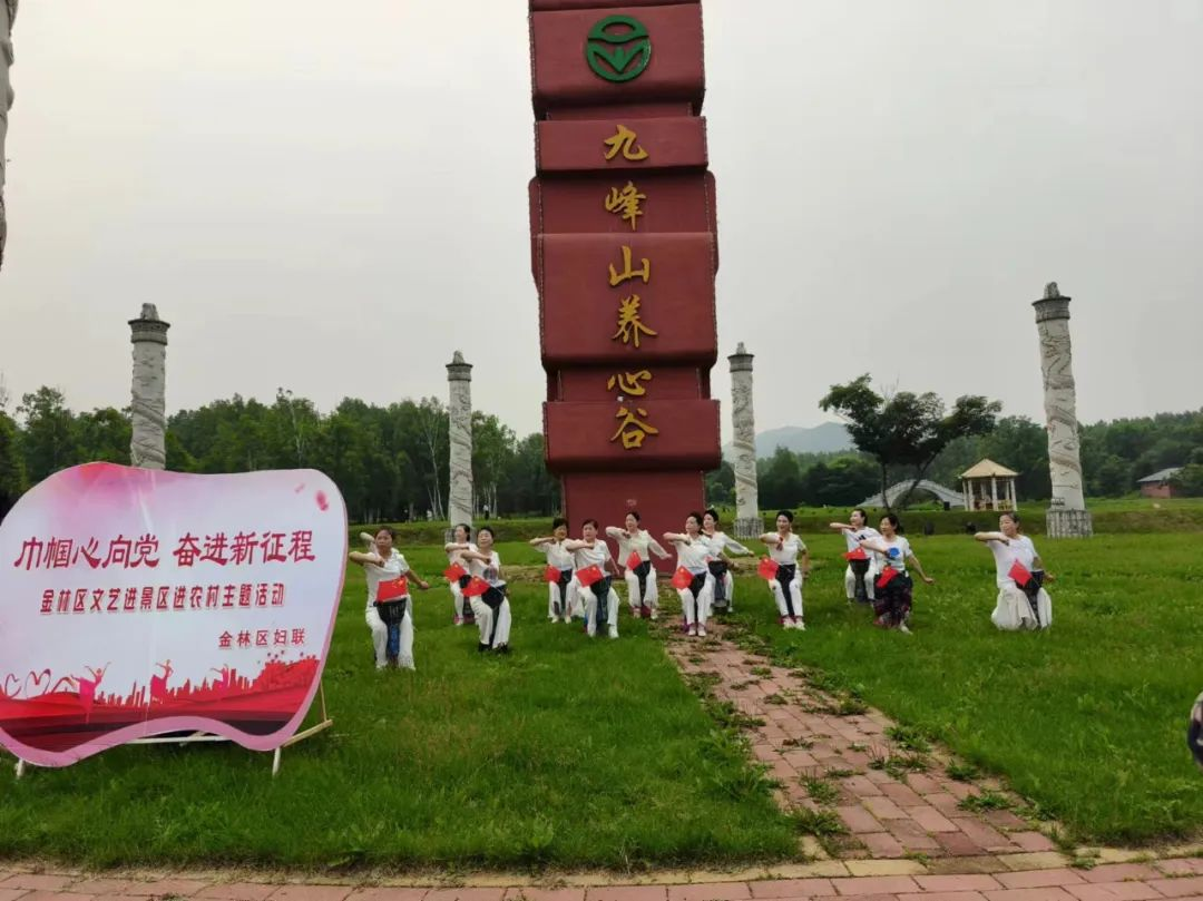 为深入开展群众性宣传教育活动,创新做强“巾帼心向党”主题活动品牌。近日,金林区妇联在九峰山养心谷、金山屯镇乐园村开展了“巾帼心向党、奋进新征程”文艺进景区进农村主题活动,为游客和当地村民送上了一场丰富多彩的文化盛宴。