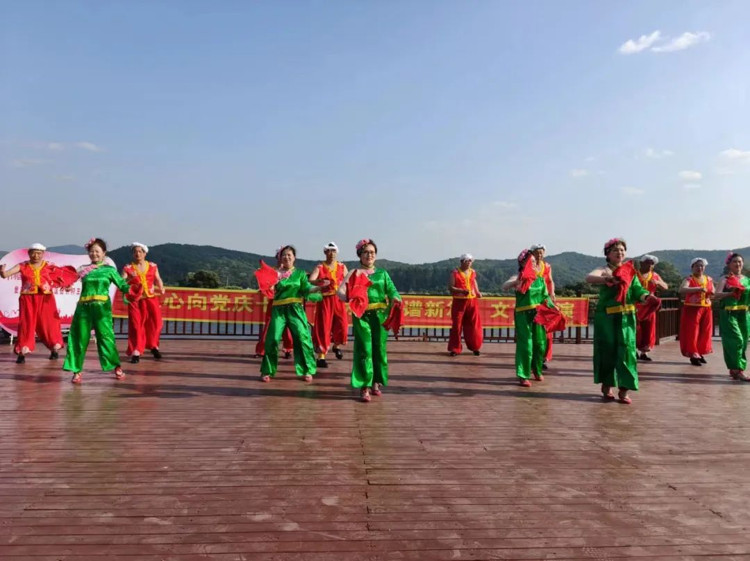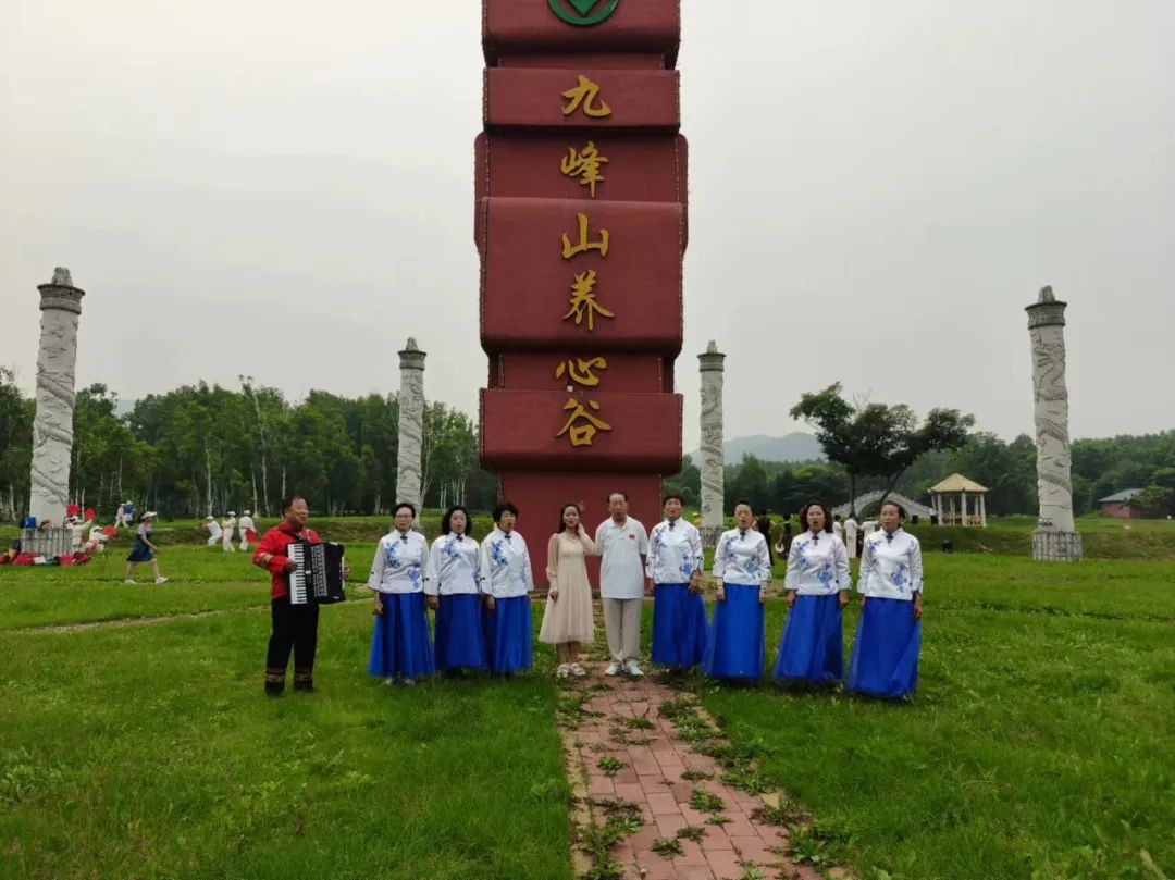 在九峰山养心谷景区,区老年大学精心组织的表演团队为游客们带来了舞蹈、快板、葫芦丝演奏、太极表演、旗袍走秀等形式多样、内容丰富的节目。欢快的舞蹈如彩蝶翩跹,优美的歌声似黄莺出谷,还有声情并茂的快板及旗袍秀表演,展现着女性的柔情与力量,为景区增添浓郁的文化氛围,丰富游客的游玩体验。