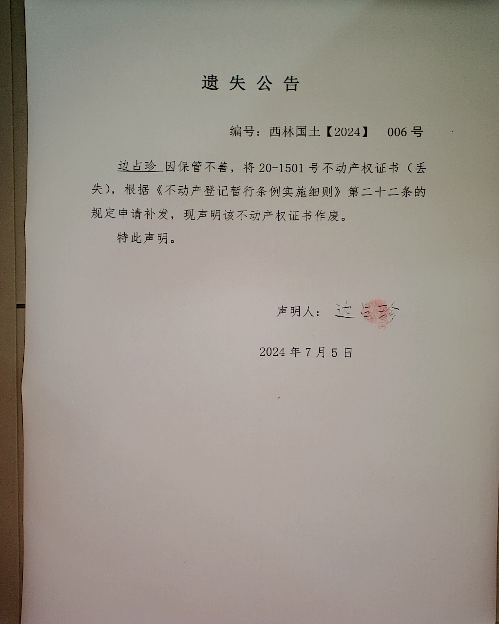遗失公告