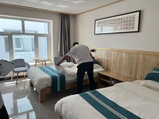 在住宿行业布草卫生整治方面,金林区卫健局联合市场监督管理局、文旅局、商务局组建联合检查组,分四组对辖区宾馆旅店开展全覆盖检查,重点核查布草“一客一换一消毒”执行情况及异味问题。近期共检查58家持证宾馆旅店,指导269家民宿规范卫生管理,未发现布草卫生不合格的持证商家。针对凯盛宾馆、枫叶宾馆、金龙宾馆存在的床单被罩较旧问题,工作人员积极沟通经营业主,解读政府布草补贴政策,推动商家计划更换床单、被罩、枕芯等布草共计532件,同时对前期整改问题进行复核,实现卫生管理闭环。