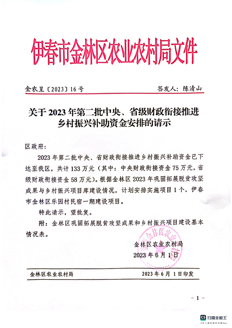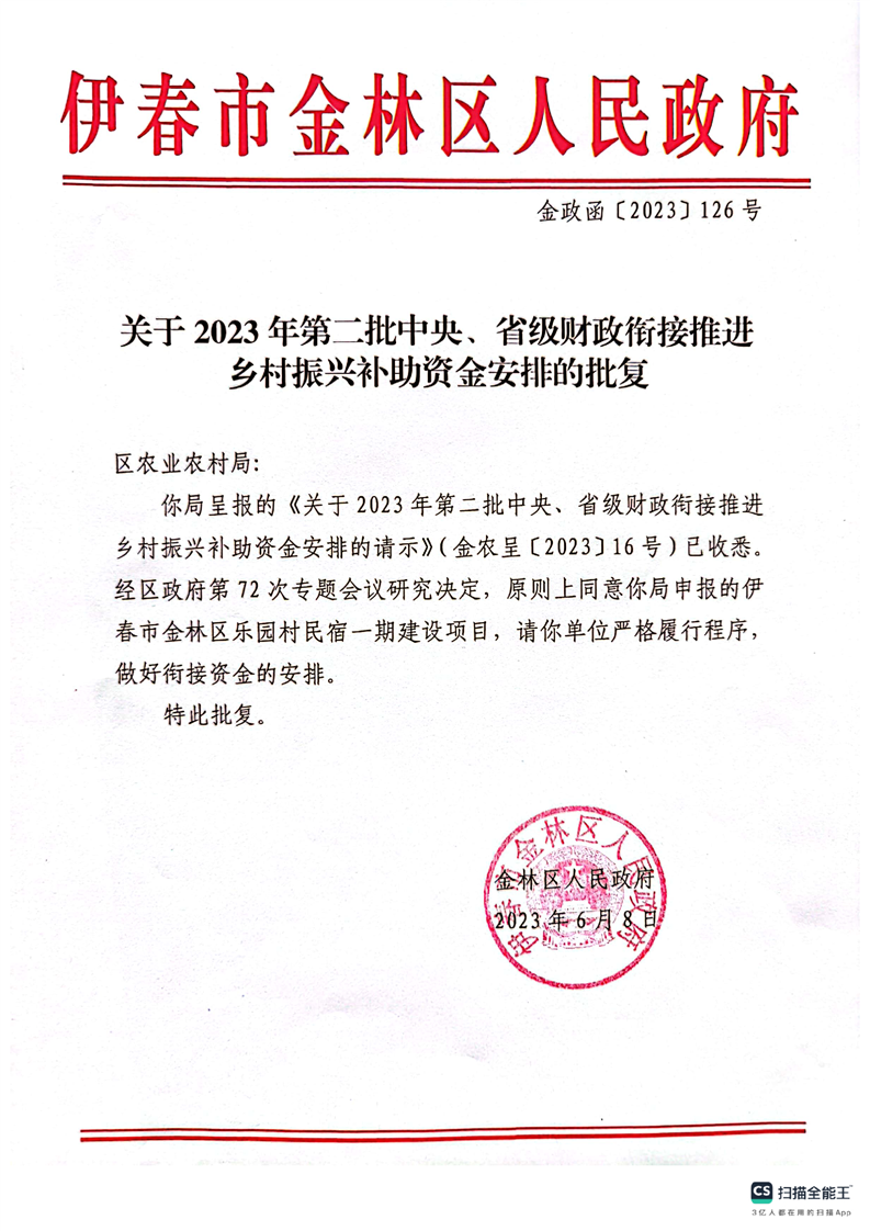 关于2023年第二批中央、省级财政衔接推进乡村振兴补助资金安排的批复
