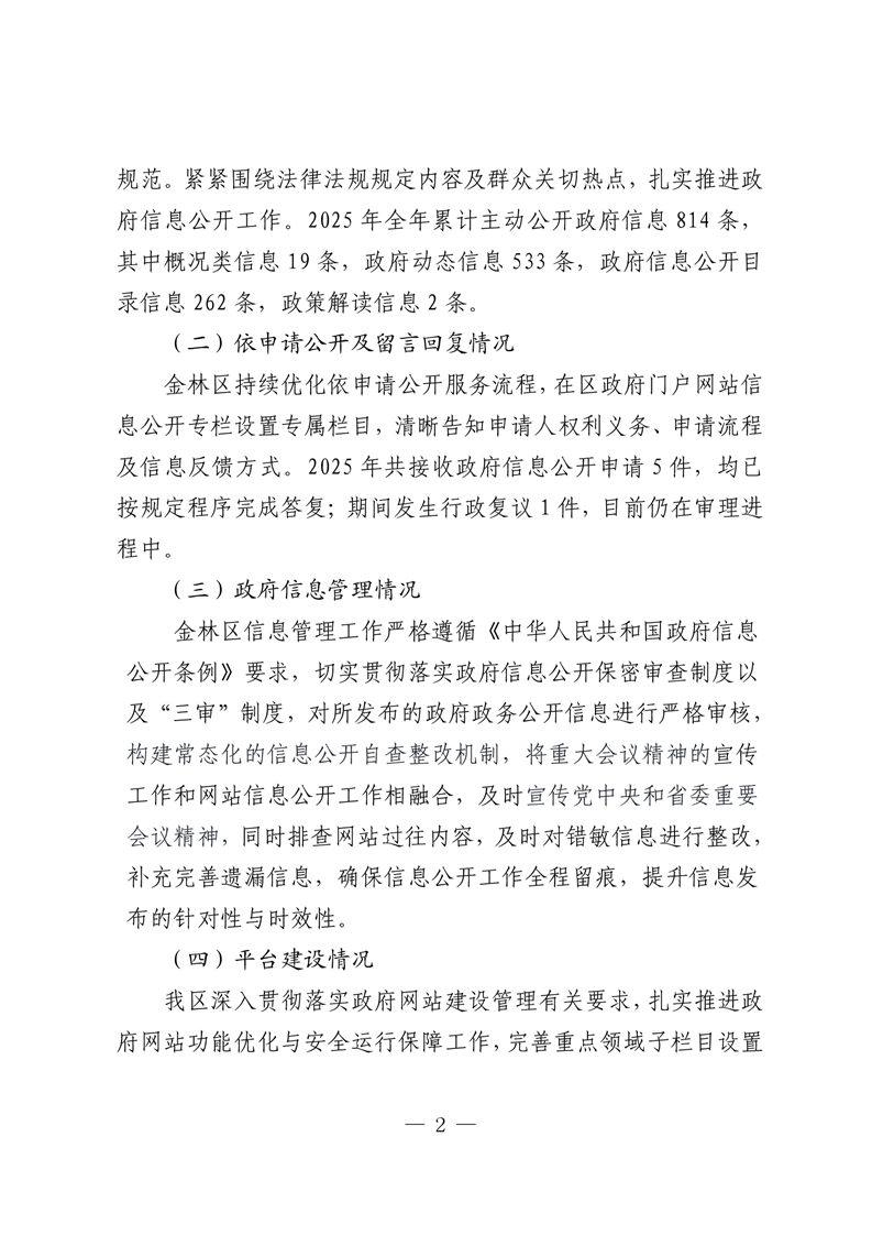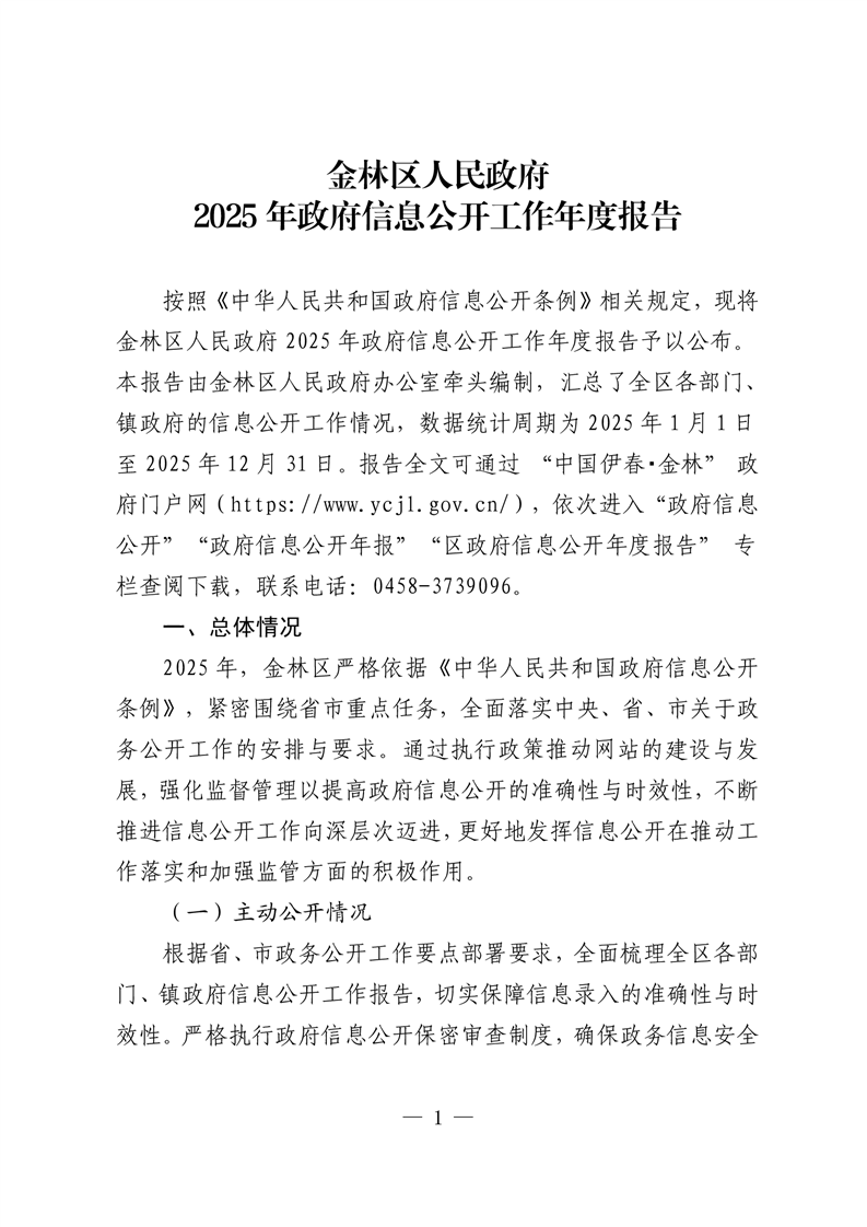 金林区人民政府2025年政府信息公开工作年度报告